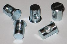 A barrel nut (also known as steel cross dowel or dowel nut) is a specialized nut, and is commonly used in aerospace and ready-to-assemble furniture applications.