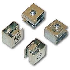 A cage nut or caged nut (also called a captive or clip nut) consists of a (usually square) nut in a spring steel cage which wraps around the nut. The cage has two wings that when compressed allow the cage to be inserted into the square holes, for example, in the mounting rails of equipment racks.