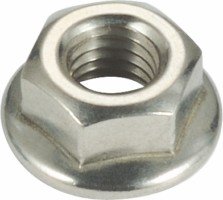 A flange nut is a nut that has a wide flange at one end that acts as an integrated, non-spinning washer. This serves to distribute the pressure of the nut over the part being secured, reducing the chance of damage to the part and making it less likely to loosen as a result of an uneven fastening surface.