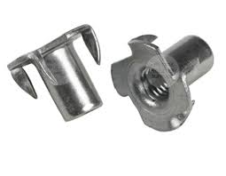 A T-nut, T nut, or tee nut (also known as a blind nut, which can however also refer to a rivet nut) is a type of nut used to fasten a wood, particle or composite materials workpiece, leaving a flush surface.